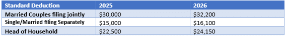 Another tax-saving way to give is through Qualified Charitable Distributions (QCD). Individuals 70.5 years old and older can perform charitable IRA rollovers and directly transfer up to a total combined of $111,000 (up from $108,000 in 2025) from their IRA(s) to qualified charities. Taxes are neither withheld nor incurred for QCD distributions, and the amount can be used to offset Required Minimum Distributions (RMD), reducing Adjusted Gross Income (AGI). For those who are RMD age, have plans to give to charity, and don’t need to take the entire distribution for income; this is a highly effective way to lower taxes!